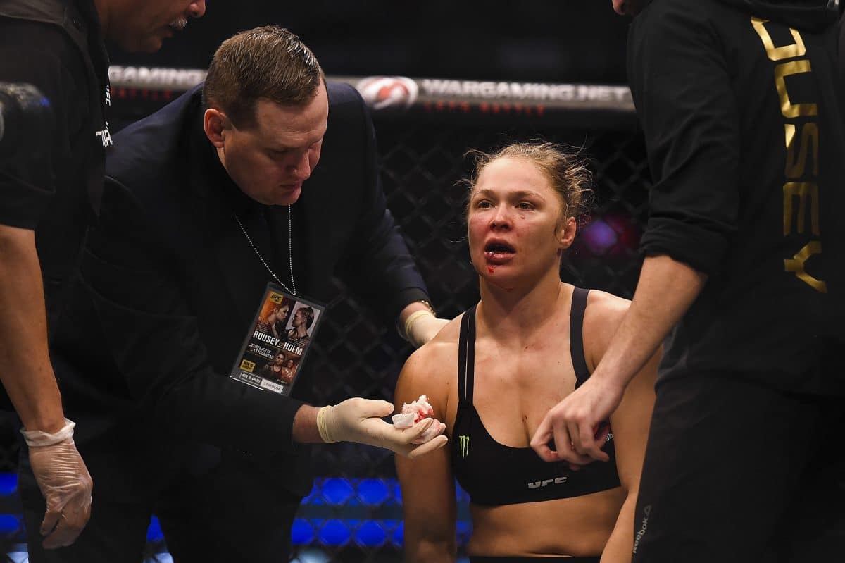 Ex-campeã de boxe, Holm surpreendeu o mundo ao nocauteá-la com um chute preciso, conquistando o título do Ultimate.