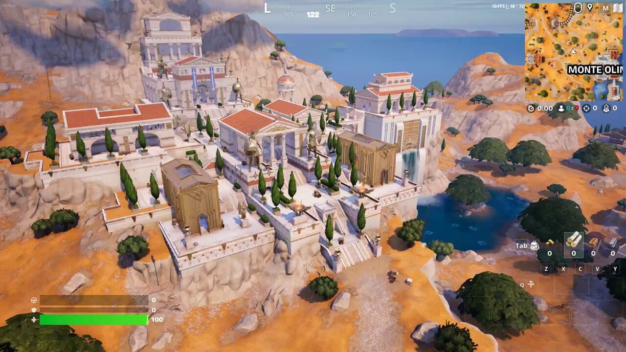 O monte olimpo foi um dos principais pontos da última temporada, já que ela era focado em personagens mitológicos daquele jeito que só o Fortnite sabe fazer. Com diversos prédios, o local tem vários baus de armamento e de munição.