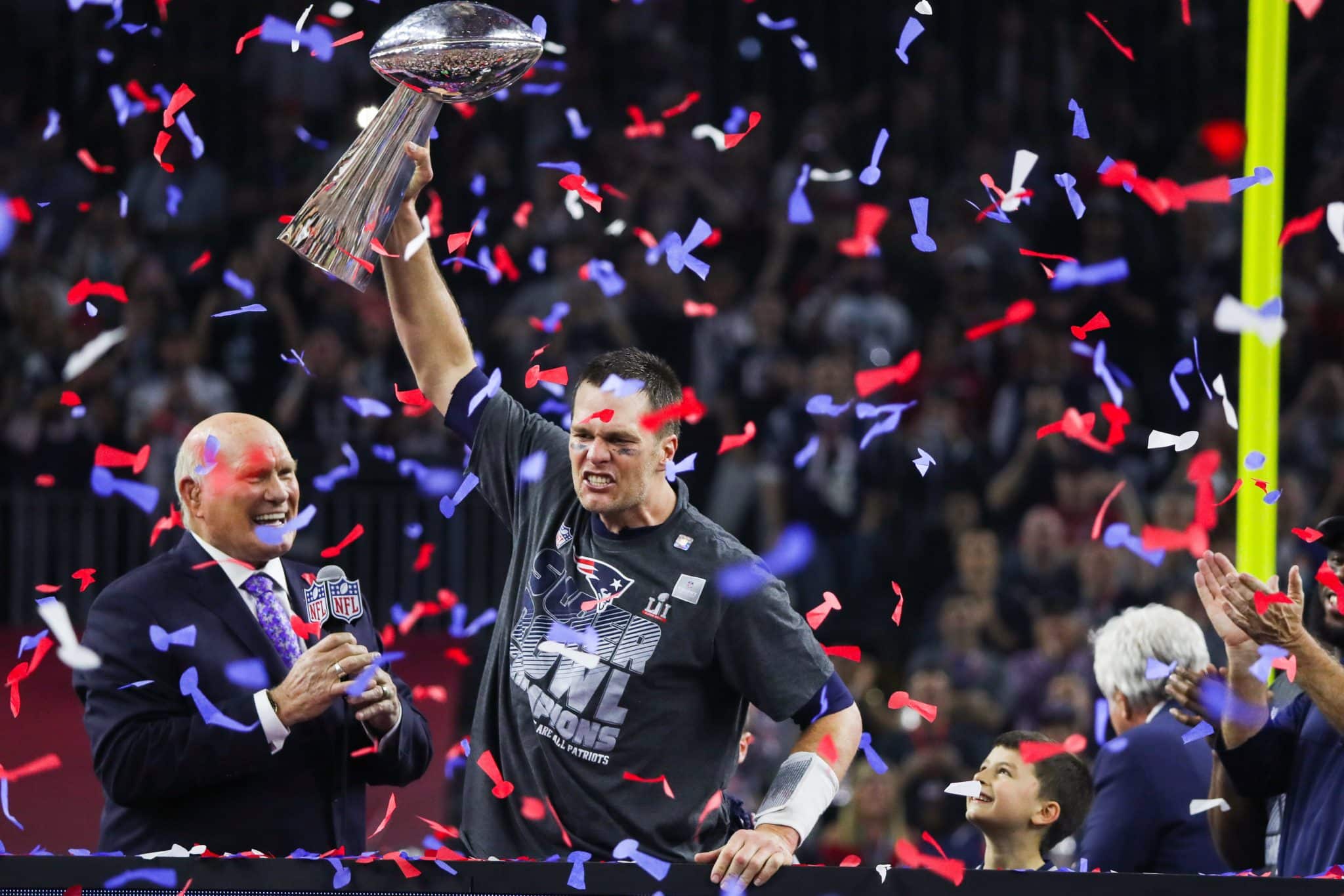 O Super Bowl XXXVI marcou o primeiro título de Tom Brady em sua segunda temporada na NFL. Na decisão, ele enfrentou um St. Louis Rams que havia terminado a temporada regular com 14 vitórias e apenas duas derrotas.